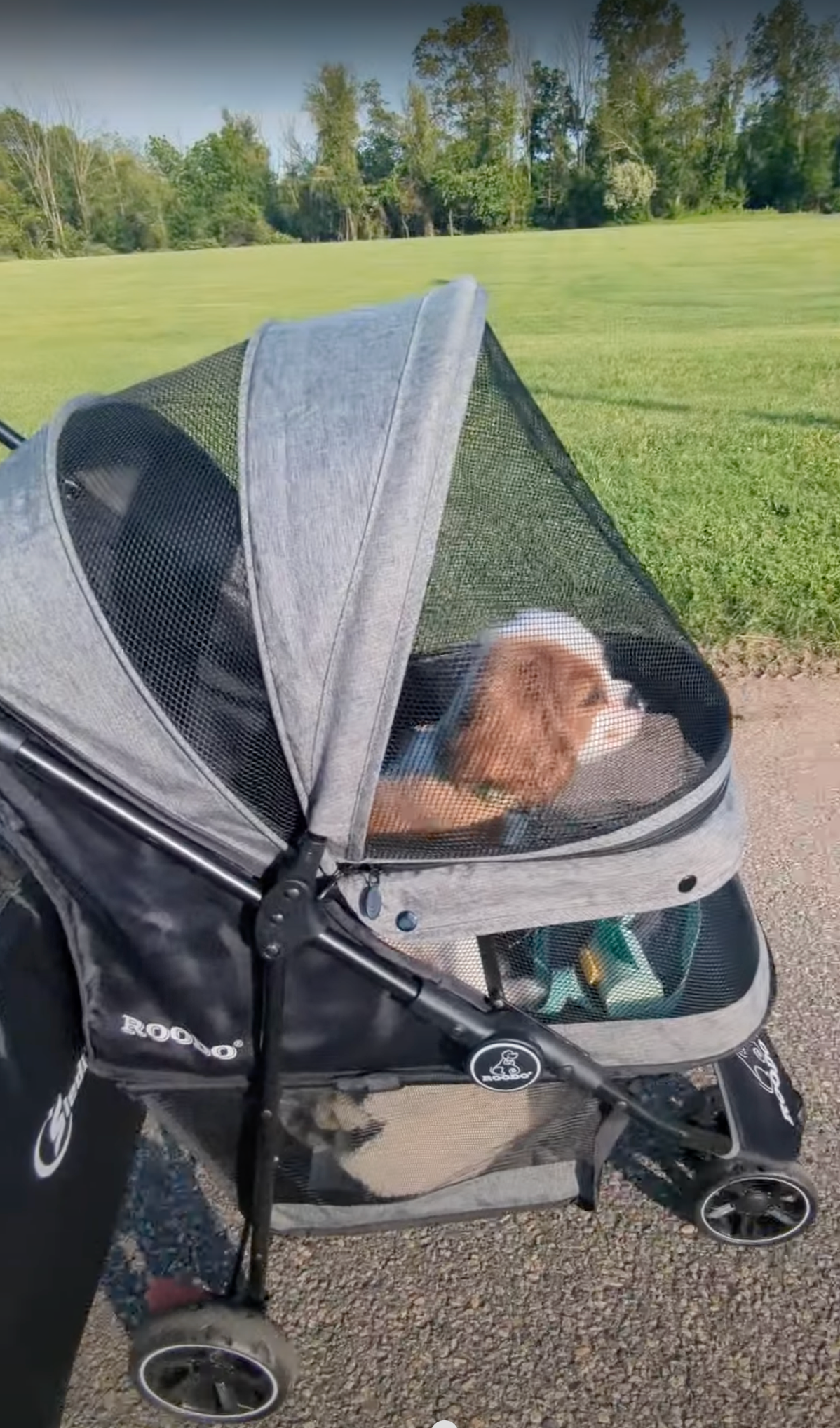 Strolling in style. If you’ve ever wished your pup could come along…